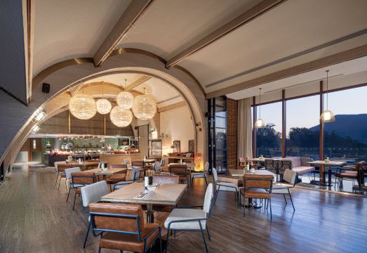 南京园博园英迪格酒店坐落于南京江宁汤山园博园紫东中心地带-半山之间,可俯瞰整个再生花园山谷和花海梯田。依托周边起伏的山势及开凿的矿石岩壁,酒店高低错落的别墅以庭院形式分布,连接曲折蜿蜒的步径和水道,从英迪格邻间文化汲取灵感,呈现一处山情水韵的静谧之所。
